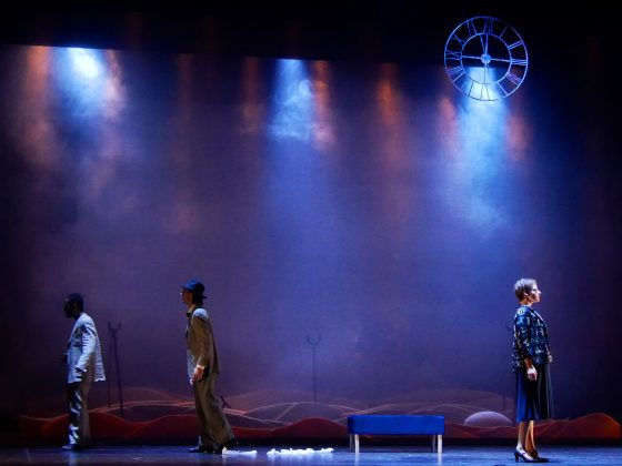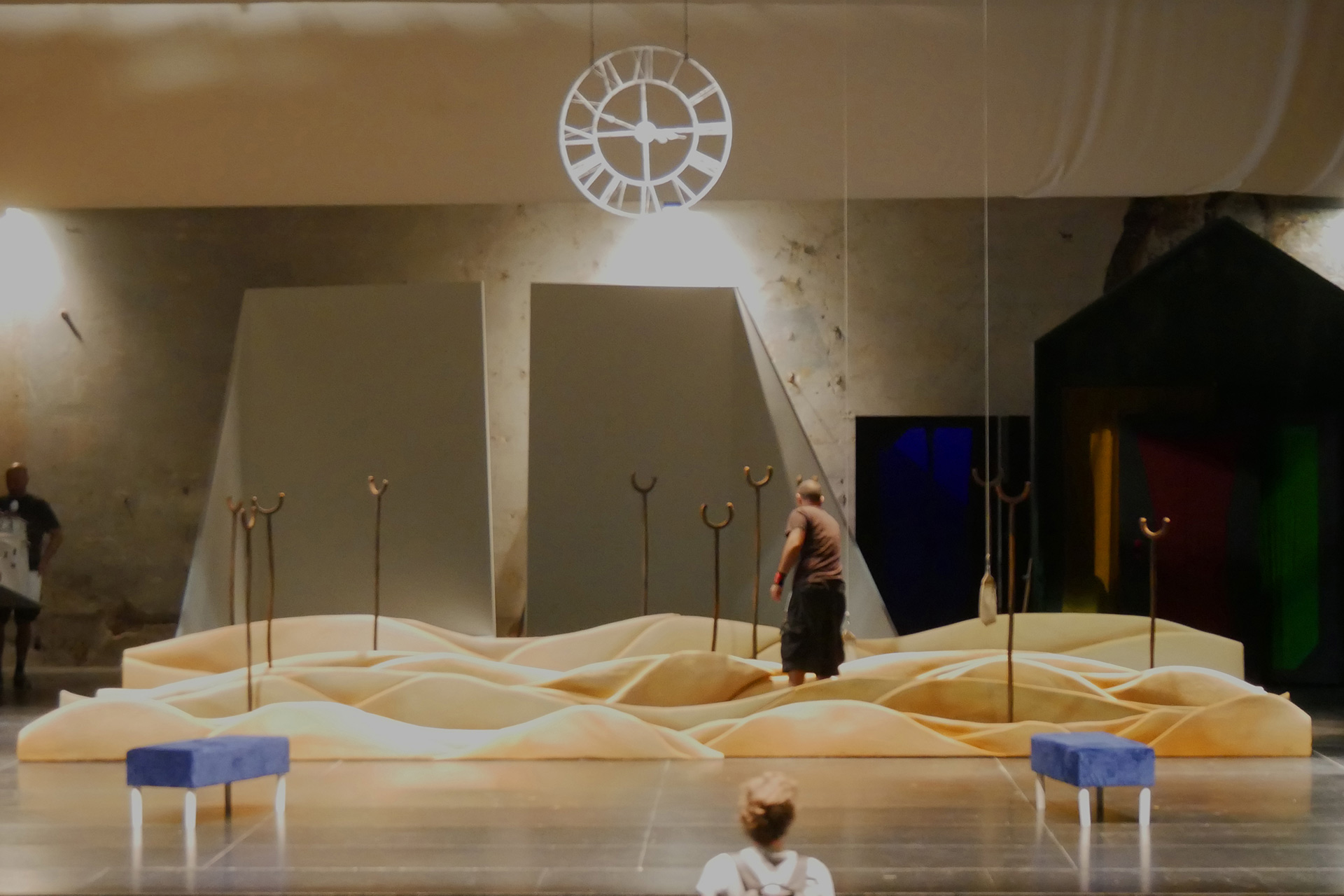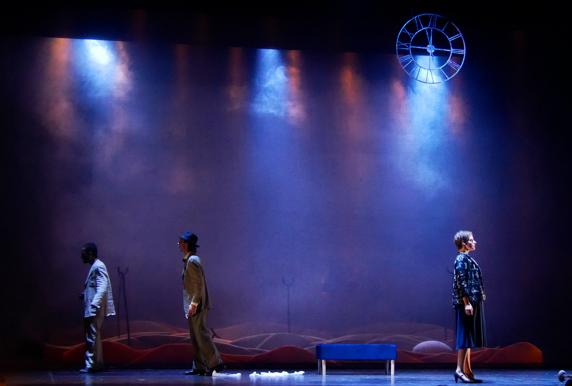 Deus ex machina, il terzo attore cantante – colui che dal principio entrava e usciva dalle scene, bofonchiando l’attesa di essere invocato – entra quindi in scena per fornire la soluzione per potersi incontrare… E proprio rivelando l’esistenza della trìstrofa da intonare come preciso elemento musicale e fantasiosa prassi del canto gregoriano che risolverà ogni cosa, cade nel vortice drammatico del non poter risolvere. Così, nella sua velleità di mettere ordine, si accorge che non rimane più nessuno…