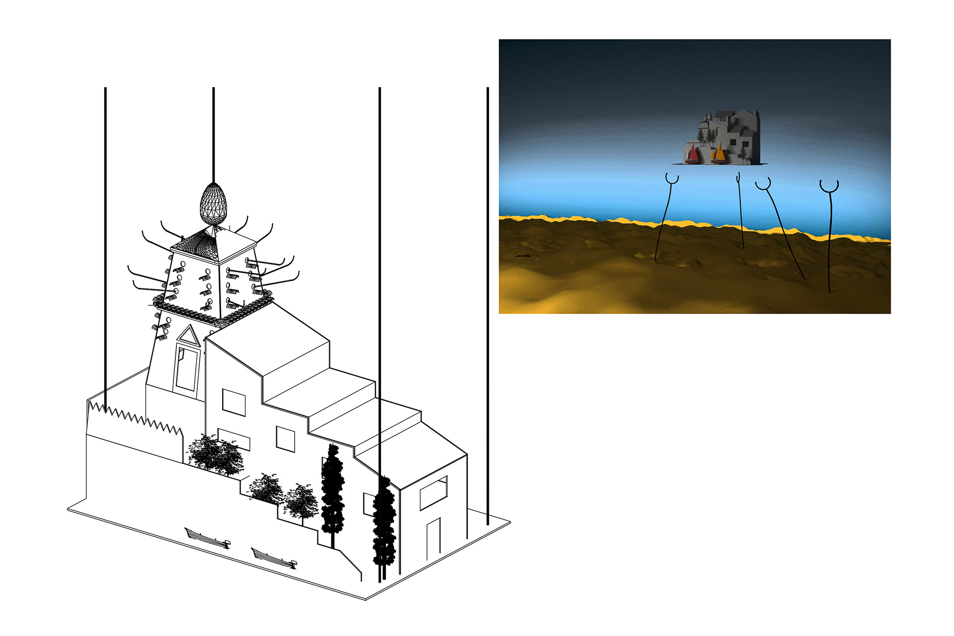 Bildmage (e viceversa), in cerca di pareti che non troverà mai su cui fissare definitivamente la propria forma. Plufghig Lucht, volendo ballare con la luce, cerca una presa di corrente per la sua lampada. Non riuscendo nell’impresa, a volte occupa lo spazio di Strippy Sox (e viceversa), la cui ossessione di aprire un cassetto per prendere i suoi tanto amati calzini a righe sfocia inevitabilmente in una vertiginosa roteazione del braccio che decide di utilizzare.
