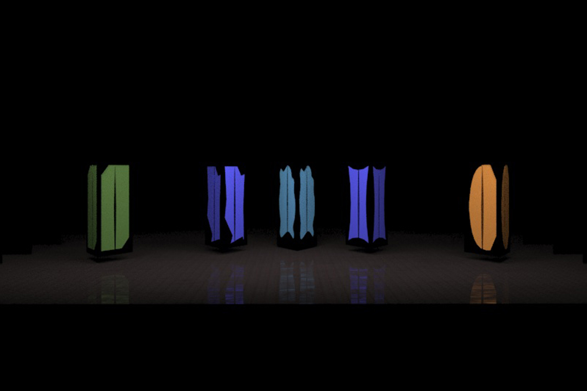 Cinque forme (cornici) fluttuanti di diversi materiali delineano il confine tra scena e non scena. I due attori cantanti (soprano e tenore) si trasmutano nei diversi personaggi a seconda della forma – e quindi della sonorità a essa associata – che attraversano entrando in scena, e vivono ognuno il proprio dramma interagendo in una catena di relazioni mancate. Scarterìn Les BonBon, pura e puerile, desiderosa di farsi mangiare, offre la propria caramella a chiunque, in una disperata impossibilità di comunicazione; poi, di tanto in tanto, saltando giocosamente in un’altra cornice, diventa Losünge